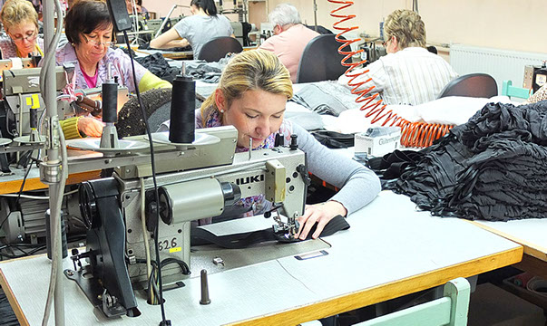 Posiadamy nowoczesny i rozbudowany park maszynowy, dający możliwość szycia różnorodnych, również nietypowych projektów. Zatrudniamy 30 wykwalifikowanych krawcowych z bogatym doświadczeniem. Zadbaliśmy o to, aby w pomieszczeniach produkcyjnych zachowana została odpowiednia przestrzeń dla każdego stanowiska pracy, co wpływa na utrzymanie dobrej wydajności oraz wysokiej jakości naszych produktów. W ten sposób dbamy o kulturę pracy i precyzję wykonania, przy jednoczesnym utrzymaniu wysokiej wydajności i terminowości realizacji zleceń.