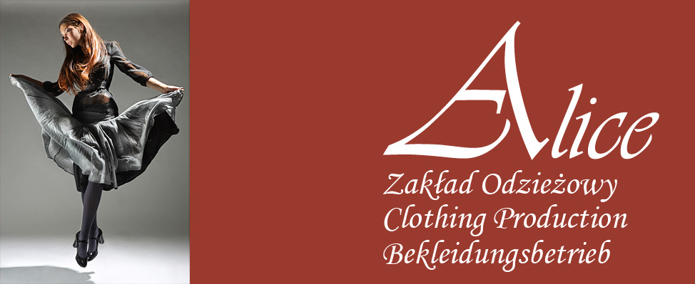 Firma Alice istnieje od 2004 roku. Jesteśmy producentem odzieży damskiej, szyjemy na zamówienie klienta, zgodnie z jego oczekiwaniami. Głównym celem firmy jest wysoka jakość wyrobów. Jesteśmy otwarci na wyzwania stawiane nam przez wymagających Klientów, stawiamy na elegancję i szyk. Chcemy budować swoją przyszłość w oparciu o zaufanie, rzetelną i solidną współpracę z naszymi stałymi partnerami.